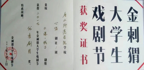 2017年8月20日下午两点半,2017北京金刺猬大学生戏剧节在北京朝阳区九剧场落下帷幕,著名编剧史航,著名导演王晓鹰、白一骢,著名表演艺术家雷恪生、许娣出席了本届大学生戏剧节的闭幕式。金刺猬大学生戏剧节由北京市戏剧家协会、北京市朝阳区文化馆、灵河文化传媒(上海)有限公司联合主办,是中国高校戏剧节中时间最长、参与范围最广、人气最高的大学生戏剧节。本届戏剧节自8月5日至8月19日期间在北京9剧场展开演出,戏剧节共收到来自全国22个省市自治区的63所高校的75个剧社的报名剧目,唐山师范学院中文系心侣剧社的原创话剧《谍·栈》和武汉大学、中国传媒大学、四川大学、中央民族大学、北京青年政治学院等院校的15部剧作脱颖而出,成功入选本届大学生戏剧节,其中有14部在北京展演。8月12日、13日两天,心侣剧社原创话剧《谍·栈》在北京朝阳9剧场上演,剧社成员的表现得到了现场专家和观众的认可,并最终获得优秀剧目奖,为我校争得了荣誉,这也是心侣剧社继2009年、2014年之后第三次获得该奖项。心侣剧社能够四次入选大戏节并多次获奖,成为建国以来河北省所有高校中唯一获此殊荣的大学生剧社,与学校的高度重视和一代代心侣人的不懈努力是紧密相关的,同时这也充分展示了我校的办学实力和学生突出的综合素质。