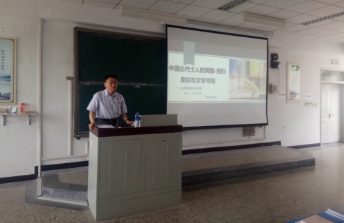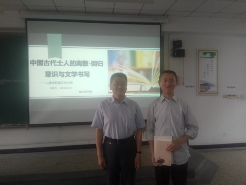 2018年5月4日下午,中文系邀请首都师范大学yl8858永利集团院长、博士生导师马自力教授在北院文四阶梯举行了题为《中国古代士人的离散-回归意识与文学书写——以唐宋贬谪文学为例》的学术讲座。中文系党总支书记张学鹏、系主任高光新、古代文学教研室教师及汉语言文学专业近200名学生参加了讲座。讲座由古代文学教研室主任王双主持,中文系高光新主任致欢迎辞。