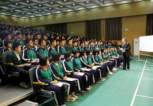 唐山实验学校常务副校长、高中部校长胡小环致欢迎辞。曹勇军教授首先为师生展示《将进酒》观摩课,王荣生教授进行了精彩的课后点评。随后,曹勇军教授为师生做了《从常规课到代表课——基于课堂的语文教师成长密码》的学术讲座,分享了“语文的个性”、“理解语文教师文本解读的独特性”、“学会备课和教学设计”等教师成长秘诀。