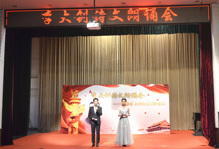 主持人宣布诗会正式开始。美好的声音、深沉的旋律徐徐响起,把全场师生带进了李大钊的革命岁月。大家一起瞻仰了《伟人之躯》,感受了《那个时代》的故事,重温了《十六年前的回忆》,回望了他短暂却辉煌的人生,遇见了铁肩担道义的革命斗士,认识了妙手著文章的革命理论家,把属于《他的礼赞》,献给了这位中国共产党最杰出的创始人之一——李大钊,深情赞颂了李大钊同志不朽的革命业绩和伟大精神。