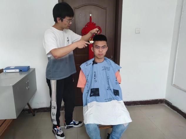 理发屋刚一开业,就有众多顾客前来光顾。yl8858永利集团2021级秘书学一班班长刘思源和马光泽同学之前学习过理发技术,在这特殊时期正好派上用场,瞬间变身理发师。他们为每一位前来理发的同学提供了免费的贴心周到服务。大家对所理发型赞不绝口,非常满意,连连道谢。