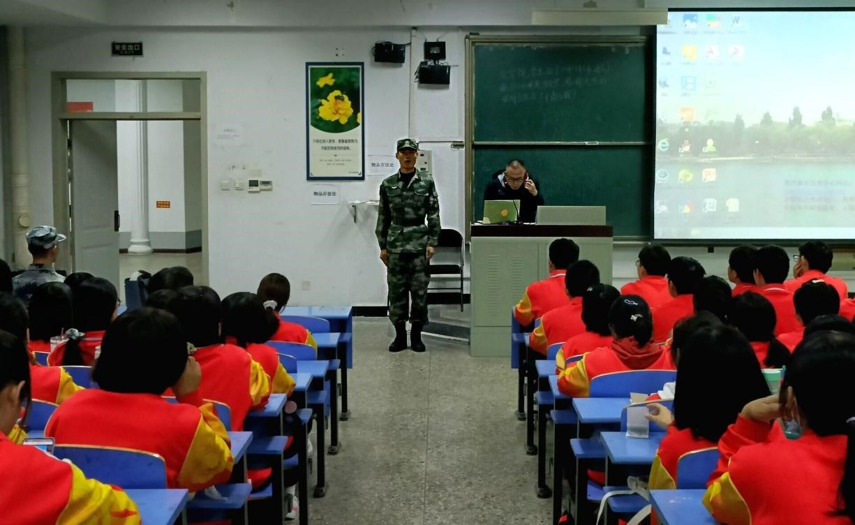 首先,辅导员王文娟为新生介绍了此次军训的五位教官,教官们对同学们提出了一些具体要求。接下来,马广宽书记对同学们也提出要求,希望同学们坚持出勤,认真训练。