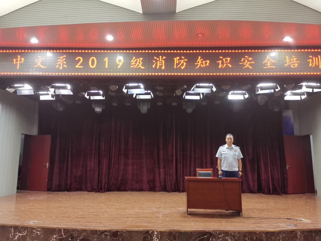 为提高2019级新生对消防安全的认识,进一步掌握消防安全知识以及灭火器的使用方法,中文系于2019年9月3日在会议中心举办了校园消防安全知识培训。本次培训邀请了唐山市消防支队特勤二中队队长齐荣伟主讲,同时,齐队长还带来两位消防战士为学生现场演示。中文系2019级全体新生参加了此次培训。