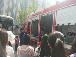 唐山市消防支队特勤二中队中队长、一级消防指挥员齐荣伟首先带学生们参观了中队的车库,为大家介绍了中队的各种车辆器材,详细讲解了各种消防器材的用途和使用方法,包括高喷消防车、登高平台消防车、抢险救援机器人等,使同学们对消防救援的设备有了一定的认识。随后,齐队长带领学生们参观了消防官兵的宿舍,现场观看消防官兵叠被子。接着,齐队长又带领学生们观看了消防安全宣传片,现场进行安全知识讲座,普及消防安全知识,并教学生如何使用灭火器、火灾中如何逃生。