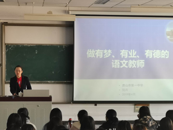 为切实强化中文系师范专业学生的专业意识,提升专业素质,2019年4月2日下午,中文系邀请唐山一中校长办公室主任、我校中文系优秀毕业生刘卉为2017级汉语言文学专业和汉语国际教育专业的学生进行主题为《做有梦、有业、有德的语文教师》的专题讲座。讲座由中文系副主任陈伟莲老师主持,中文系党总支书记张学鹏、辅导员王文娟老师出席。