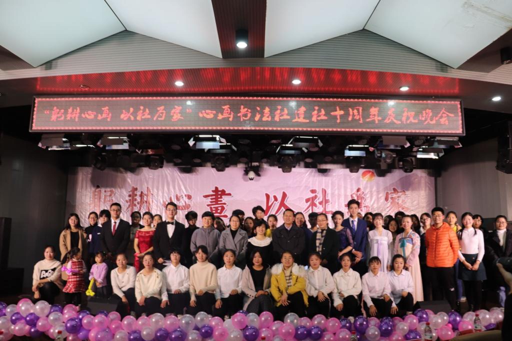 2018年11月23日晚,由中文系主办、心画书法社承办的心画书法社建社十周年庆祝晚会在学校会议中心举行。中文系党总支书记、书法教育研究所所长、心画书法社指导教师张学鹏教授,中文系教师赵立杉、许丽君、王文娟、李春梓、史玉欢以及300多名学生参加了晚会。