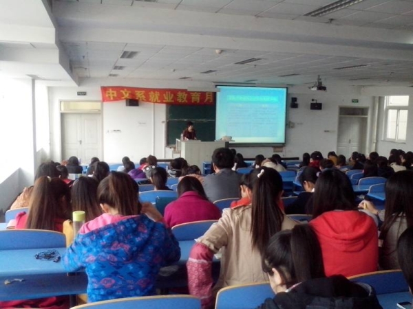 2013年10月22日下午,中文系就业教育月活动第二场讲座在北院文2阶梯教室举行。本次讲座主讲人是“唐山市十佳教师”、唐山市雷锋小学郑艳玲校长。郑校长就“怎样做好一名教师”这一主题为教师教育专业的同学做了精彩讲述。中文系主任、文学博士张素凤教授,中文系学工办主任曹丽娜老师以及中文系二百多名学生参加了此次活动。