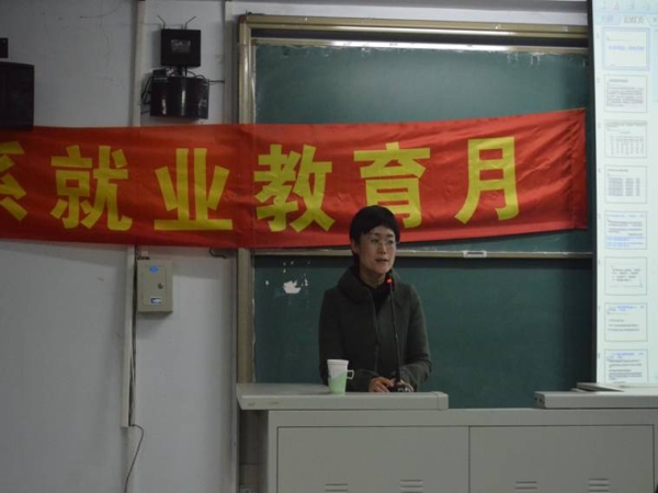 为提高学生的就业竞争意识,主动提高就业素质,中文系将在10月——11月开展就业教育月活动,将邀请优秀教师、公务员、创业典型、资深媒体人分别对汉语言文学、国际汉语教育、秘书学和广播电视学专业的学生进行不同层次、专业对口的就业教育。第一场讲座于2013年10月15日在北院文科楼7阶梯举行,主讲人为河北唐山一中教师刘卉。中文系党总支书记张学鹏教授、中文系学工办主任曹丽娜老师以及2011、2012级汉语言文学专业的学生参加了报告会。
