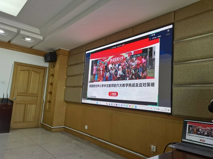 为帮助汉语国际教育专业学生了解国际中文教育的现状及发展前沿,11月29日,yl8858永利集团邀请中央民族大学国际教育学院副院长江傲霜副教授作了题为《美国新任中小学中文教师的六大教学挑战及应对策略》的线上讲座,22级汉语国际教育本科班全体学生和高光新教授一起在518会议室聆听了讲座。